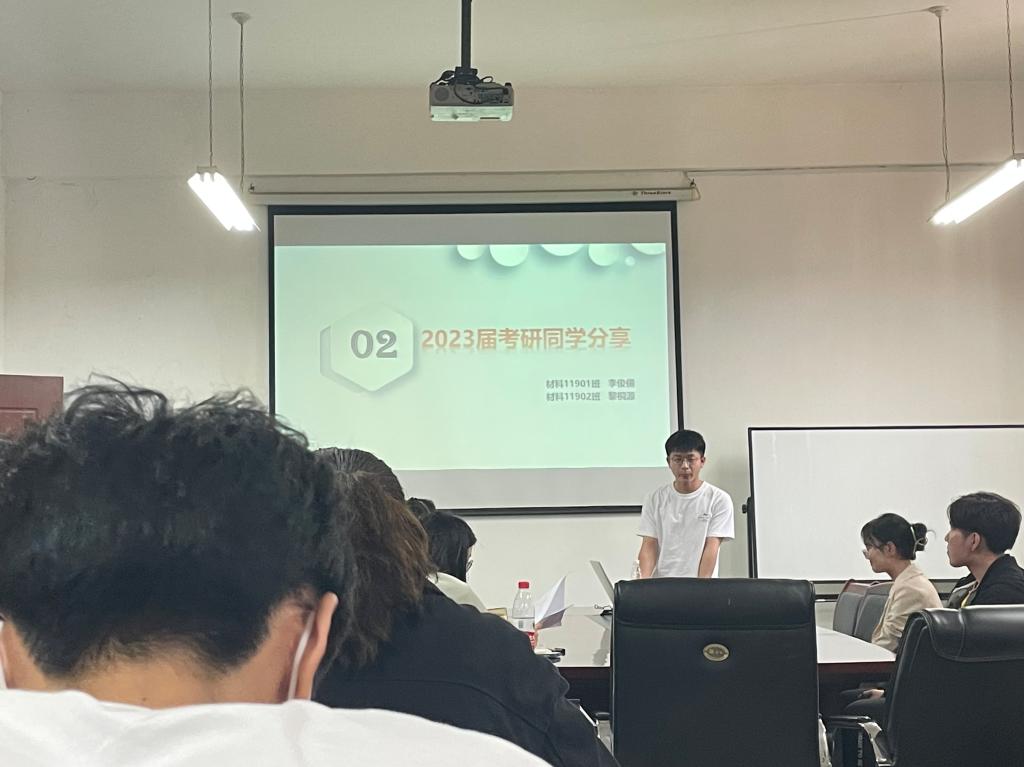 随后,材科11901班李俊儒同学和材科11902班黎桐源同学分别分享了自己的考研计划和考研现状,与大家交流了考研中遇到的困难和自己的解决办法,同学们相互鼓励,为自己的考研目标不断奋斗。高分子11801班李翠同学和材科11801班罗星宇同学分别就考研院校选择、考研过程中遇到的困难及解决办法,考研调剂经验、考研心态调整等具体问题进行讲解,同学们耐心聆听,受益匪浅。班主任王星老师从专业的角度对同学们考研学校的选择和专业复习给予了意见,徐杰老师从生活上给予同学们建议,希望同学们处理好学习和生活的关系,调整作息,坚持锻炼,为考研做好准备。