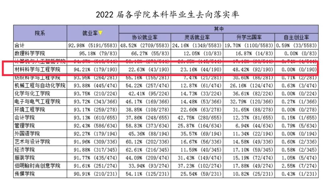 学院2022届本科生考研报考率73.1%,录取率48.5%,班级最高录取率达56.8%,考研录取率历史新高。2022届本科毕业生就业率达到94.51%。