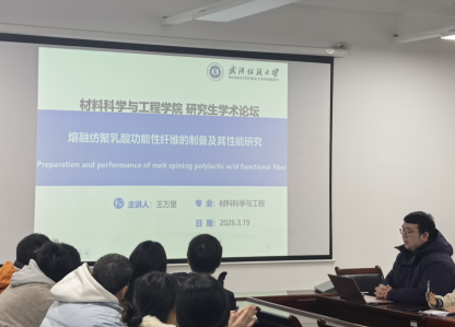 2026年3月19日,威廉希尔williamhill威廉希尔williamhill,英国威廉希尔成功举办了2026年第2期研究生学术论坛本次论坛由研究生院主办、威廉希尔williamhill,英国威廉希尔承办,陶咏真、聂坤两位老师担任轮值老师,学院研究生马倩文、王万里两位同学分别聚焦锂电池材料、生物医用材料等材料科学前沿研究方向领域展开汇报,全方位展现了学院在材料科学领域的创新突破与科研实力,为师生搭建了高质量的学术交流与成果转化平台。