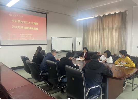 10月31日下午,威廉希尔williamhill以“学习贯彻党的二十大精神,为美好纺大建设做贡献”为题,组织召开学院党委理论学习中心组(扩大)专题会,学院党委书记陈桂枝主持,班子成员、各支部书记参加学习。