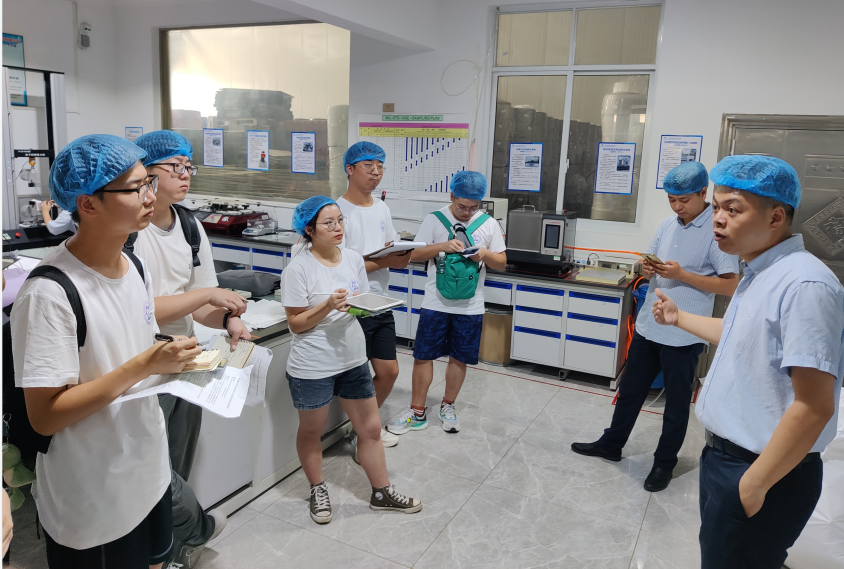 在湖北拓盈新材料有限公司,技术总监朱志敏在生产车间为同学们上了一场生动的实践课。他首先解答了同学们的各种专业问题和求职困惑,并就后疫情时代行业发展前景、企业人才需求、最新技术前沿为同学们做了详细介绍。他表示科研要服务生产,生产能指导科研,我们当代大学生要走出实验室,多在生产一线积累经验、积淀知识,从而更好地进行技术研究,更好地走向社会、服务社会。