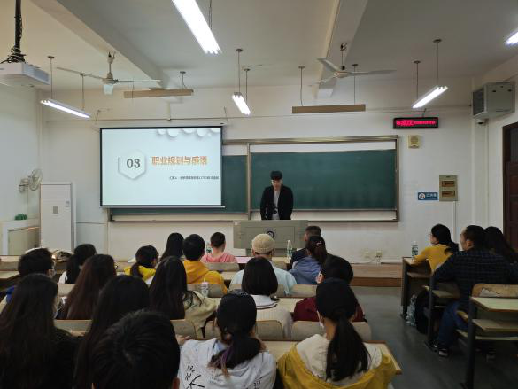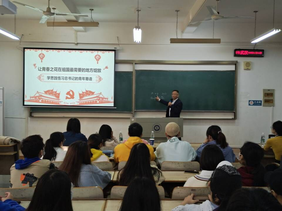 11月13日上午,威廉希尔williamhill,英国威廉希尔在阳光校区3号楼411教室组织开展了大学生职业生涯规划主题班会,校党委常委、副校长罗锦银出席并以“让青春之花在祖国最需要的地方绽放”为题给学生上了一堂精彩的思政课。