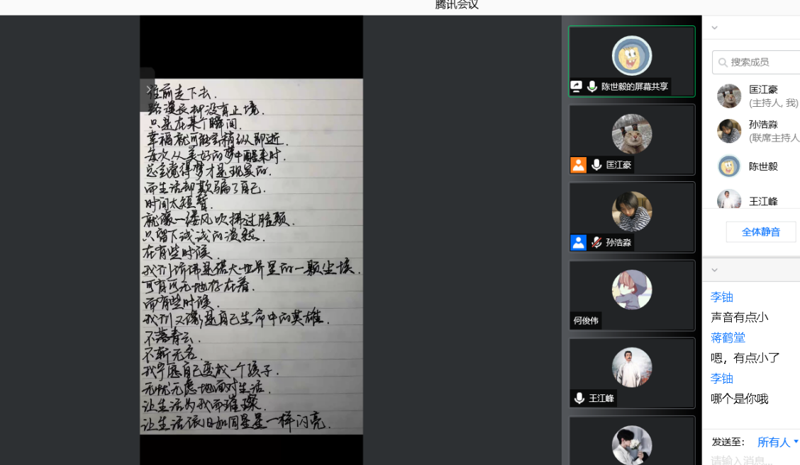 威廉希尔williamhill21级新生第一次线上班会圆满结束啦!同学们对彼此有了一个新的认识,也对威廉希尔williamhill有了初步的印象。大家纷纷表示非常期待大学生活,渴望能和彼此成为知心伙伴,也梦想着未来的自己会更优秀!