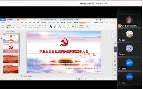 为进一步做好2020届毕业研究生党员教育管理工作,教育引导广大毕业生党员进一步增强“四个意识”、组织观念和纪律观念,切实发挥党员的模范带头作用,5月18日晚,威廉希尔williamhill,英国威廉希尔通过腾讯会议在线召开毕业研究生党员离校教育大会,学院党委副书记侯畅、研究生党支部支委及全体毕业生党员参加大会。大会由研究生党支部副书记曾凡佳主持。