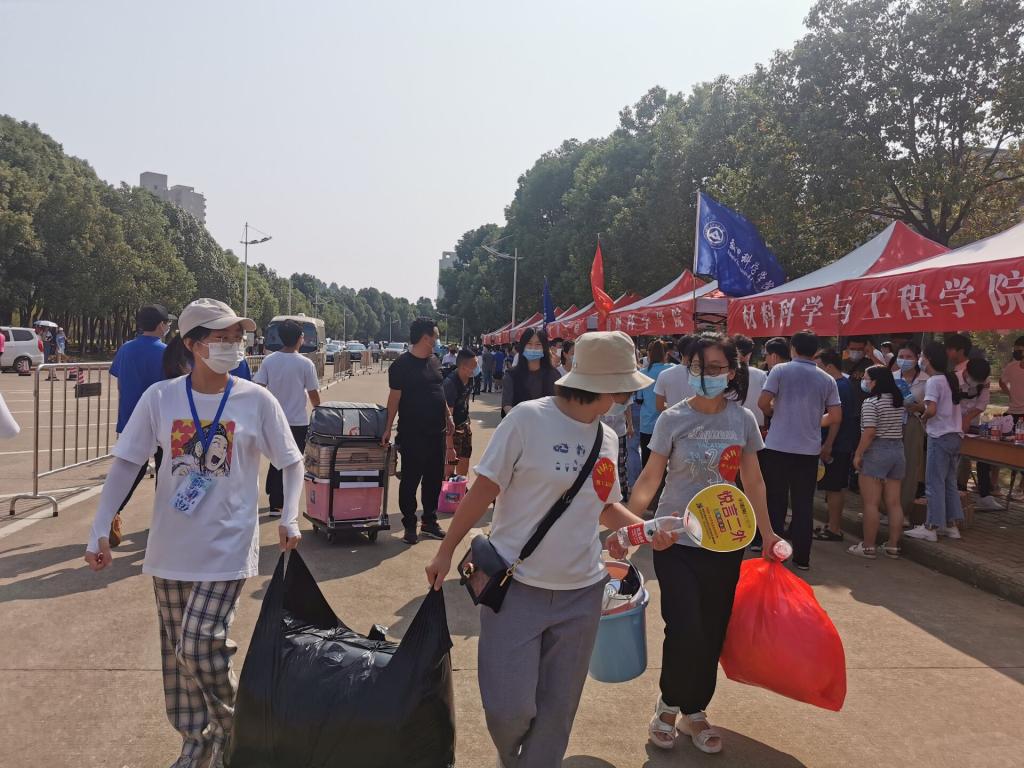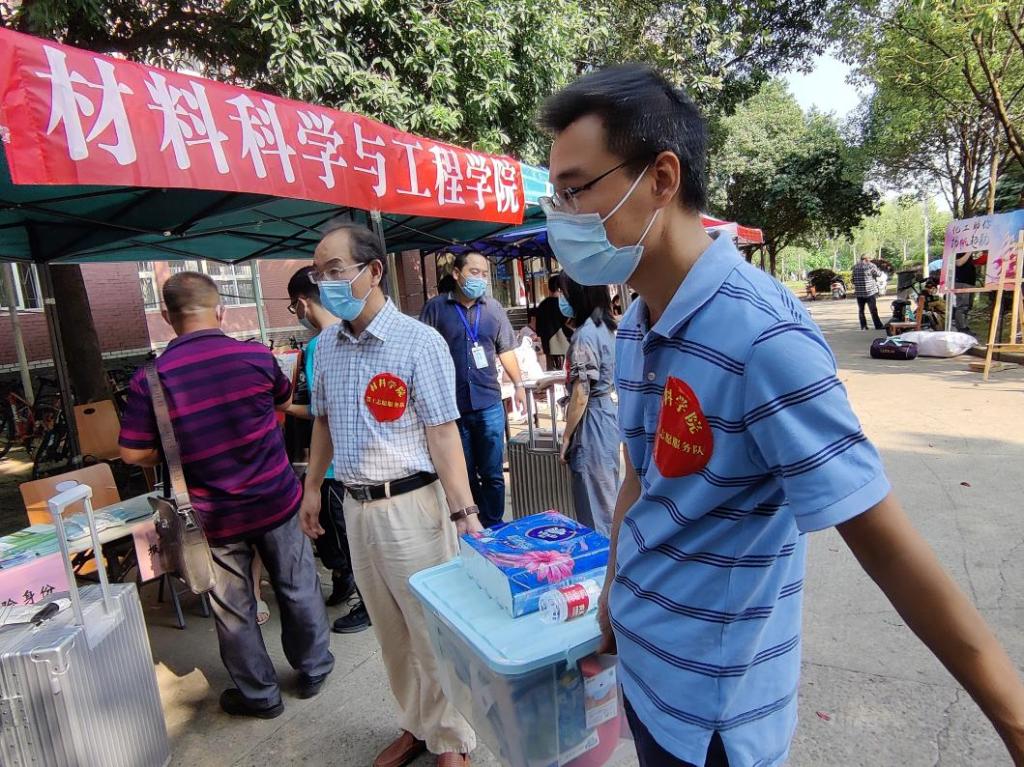 为适应疫情防控要求,今年的迎新家长不能进寝室帮学生搬运行李,为了更好服务每一位新生,威廉希尔williamhill四十余名党员教师、班主任、辅导员全员上阵,“一对一”对接学生,实现责任到人、责任包干。他们佩戴红色志愿标识,手拎学生行李,不停地穿梭在校园的各个角落。