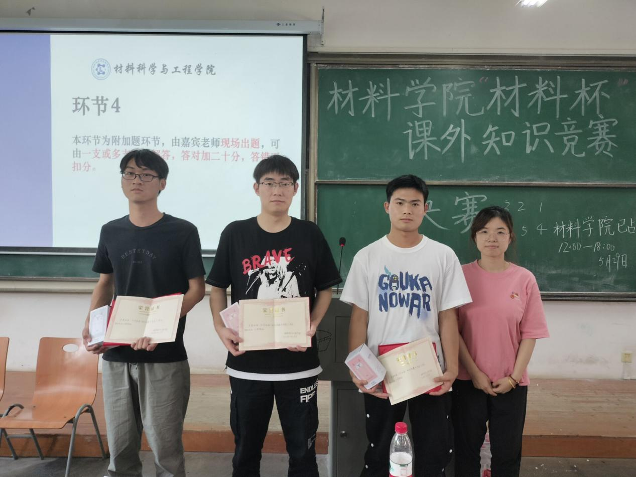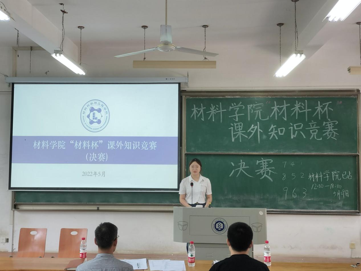 为了丰富同学们的课余生活,营造良好的学术科研氛围,进一步提高学生专业素养,增强团队合作精神和团体凝聚力,威廉希尔williamhill举办“材料杯”课外知识竞赛决赛,活动于2022年5月29日下午2点在3-118教室举办。威廉希尔williamhill副院长顾绍金教授、材科12001班班主任鲁振坦、威廉希尔williamhill辅导员毛成兴老师、曾玉竹老师受邀并出席本次竞赛。