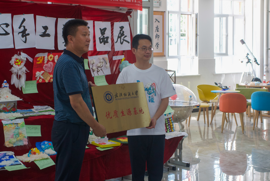 最后,殷先泽教授代表学院为精河高中授予优质生源地牌,鼓励广大精河高中学子报考纺大,选择美好未来。