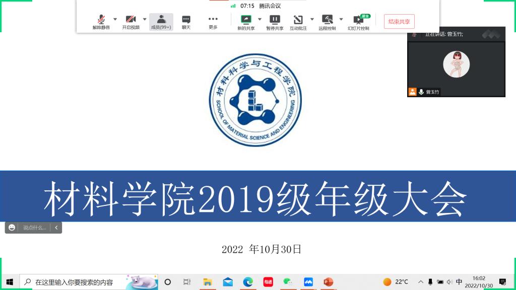 本次年级大会将年级近期工作做了统一安排,帮助同学们更好地完成各项任务,同时也坚定了同学们考研求职信心,材料学子将以饱满的精神状态迎接各项挑战。