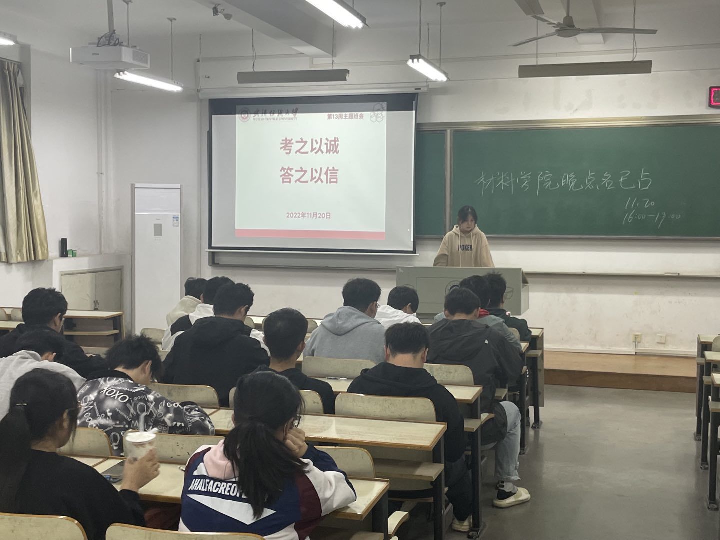 诚信,是中华民族的传统美德。11月20日晚,威廉希尔williamhill在3栋教学楼召开了“考之以诚 答之以信”主题班会。各年级辅导员、班主任、研究生辅导员参加了主题班会。
